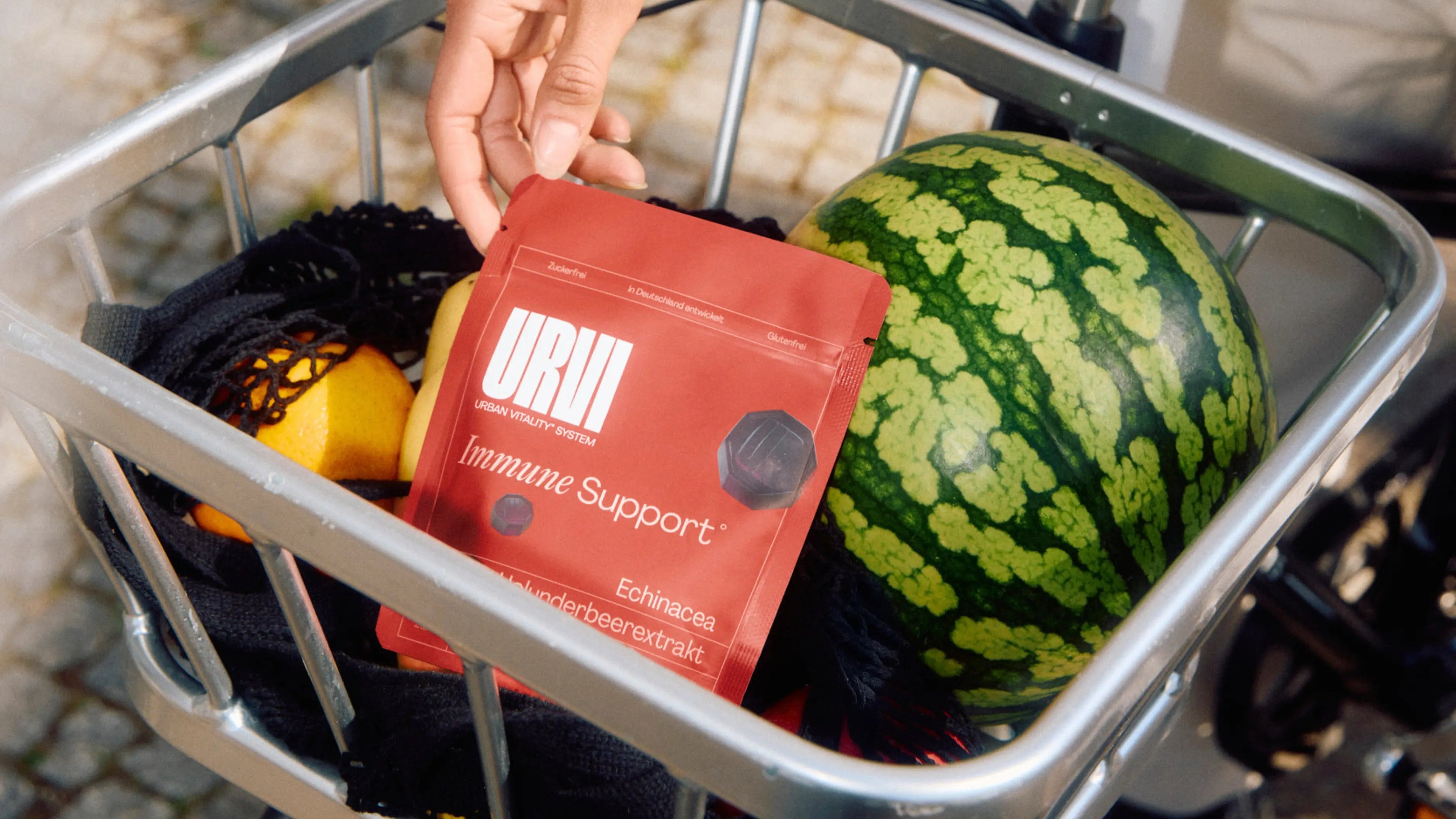 Bestellst du drei oder mehr Packs, kommt deine Lieferung in unserer ikonischen URVI® Box: eine urbane Karte, versteckte Health-Symbole und ein Packaging, das Lust auf Großstadt, Bewegung und Balance macht.